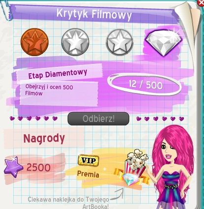 Odznaka zdobywana za oglądanie filmów. Wiele osób używa jej jako wskaźnika "pomocniczości" - liczy wszystkie obejrzane filmy, więc widać, czy ktoś ogląda czy nie. Dodatkowo otrzymujemy 10 sc oraz ok. 200 fame za obejrzany film. Po kilku oglądnięciach otrzymamy już niestety 5 sc i mniej fame.